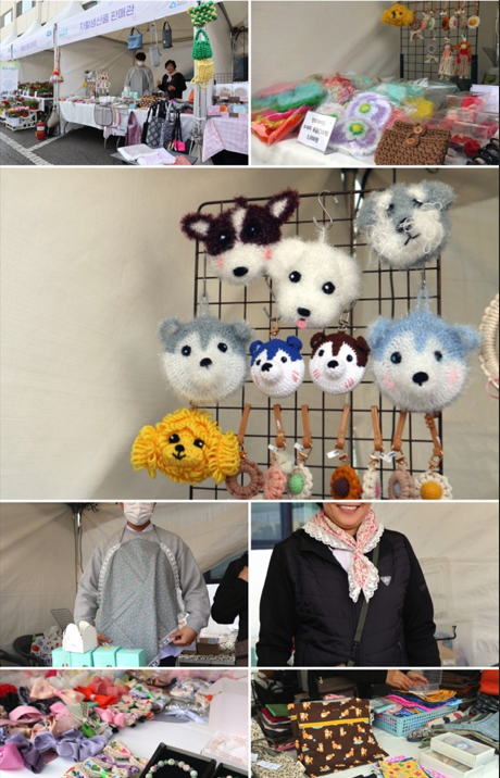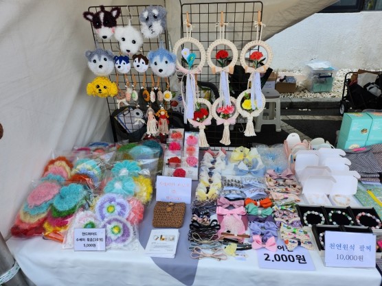 저희 부스에서는 수공예품을 주로 판매 하였는데요. 머리핀, 강아지수세미, 키링까지