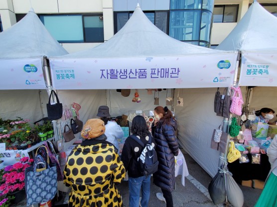 경기도청 봄꽃축제는 4월 8일부터 9일까지 개최된 대규모 행사로, 저희 자활센터도 행사에 행사부스 참가자로 참여하여 자활생산품을 판매하였습니다.