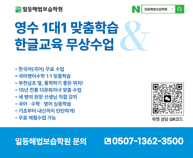 다문화를 위한 한글 무상 교육 진행, 기초부터 내신까지 탄탄하게 지도